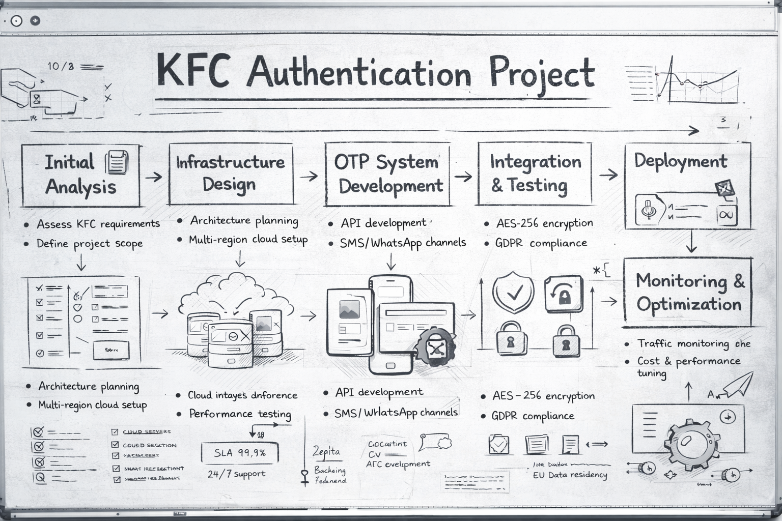 As part of the expansion of its national loyalty programme, KFC required a secure, scalable and cost-efficient authentication layer capable of supporting rapid user acquisition and high campaign peaks.